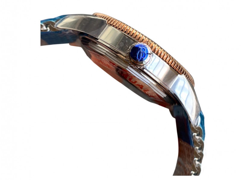 Gehäuse aus 904L Stahl mit Saphirglas mit Keramik Lünette.
